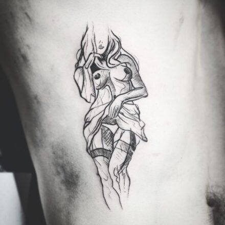 Vyznačuje se volnými, nedokončenými liniemi, které dodávají dílu dynamiku a živost. Skica tetování často kombinuje realistické prvky s abstraktními a geometrickými vzory. Většinou se provádí v černé barvě s prvky jemného stínování. Jistě vás nepřekvapí, že tatéři musí vynikat silnými dovednostmi v oblasti kresby. Díla vyžadují precizní práci s jehlami a inkoustem.