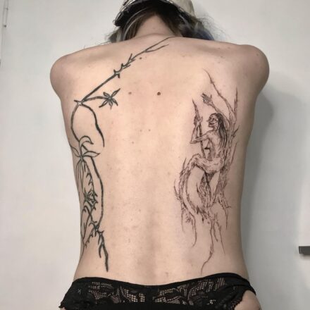 Vyznačuje se volnými, nedokončenými liniemi, které dodávají dílu dynamiku a živost. Skica tetování často kombinuje realistické prvky s abstraktními a geometrickými vzory. Většinou se provádí v černé barvě s prvky jemného stínování. Jistě vás nepřekvapí, že tatéři musí vynikat silnými dovednostmi v oblasti kresby. Díla vyžadují precizní práci s jehlami a inkoustem.