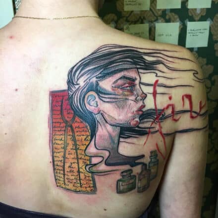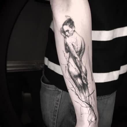 Vyznačuje se volnými, nedokončenými liniemi, které dodávají dílu dynamiku a živost. Skica tetování často kombinuje realistické prvky s abstraktními a geometrickými vzory. Většinou se provádí v černé barvě s prvky jemného stínování. Jistě vás nepřekvapí, že tatéři musí vynikat silnými dovednostmi v oblasti kresby. Díla vyžadují precizní práci s jehlami a inkoustem.