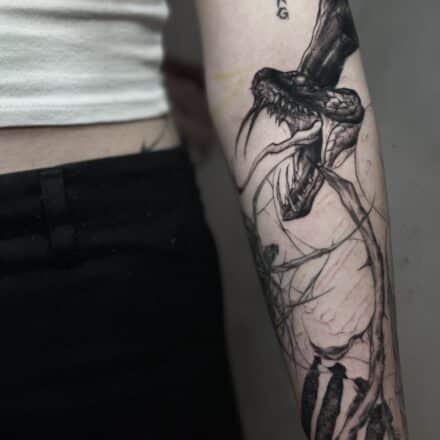 Whipshading tetování je technika stínování, která využívá rychlé a plynulé pohyby jehly tak, aby vytvořila jemné přechody a gradienty. Tento styl kombinuje preciznost s výrazností. Vytváří detaily a hloubky, které oživují každý design. Whipshading je ideální pro ty, kteří hledají výrazné stínování. Tato technika totiž dodává tetování texturu a dynamiku, čímž zvyšuje celkový vizuální efekt. Výsledkem je tetování, které je jak detailní, tak esteticky působivé.