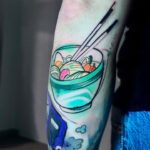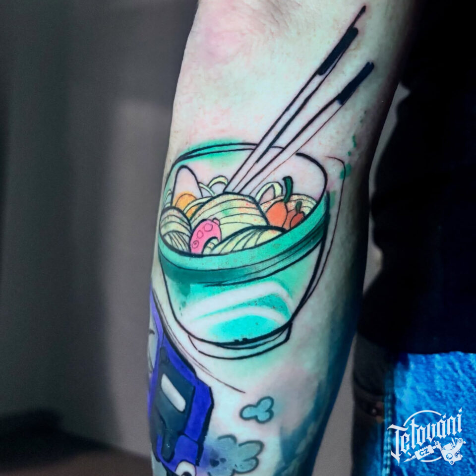 Tetování předměty, miska s jídlem na předloktí