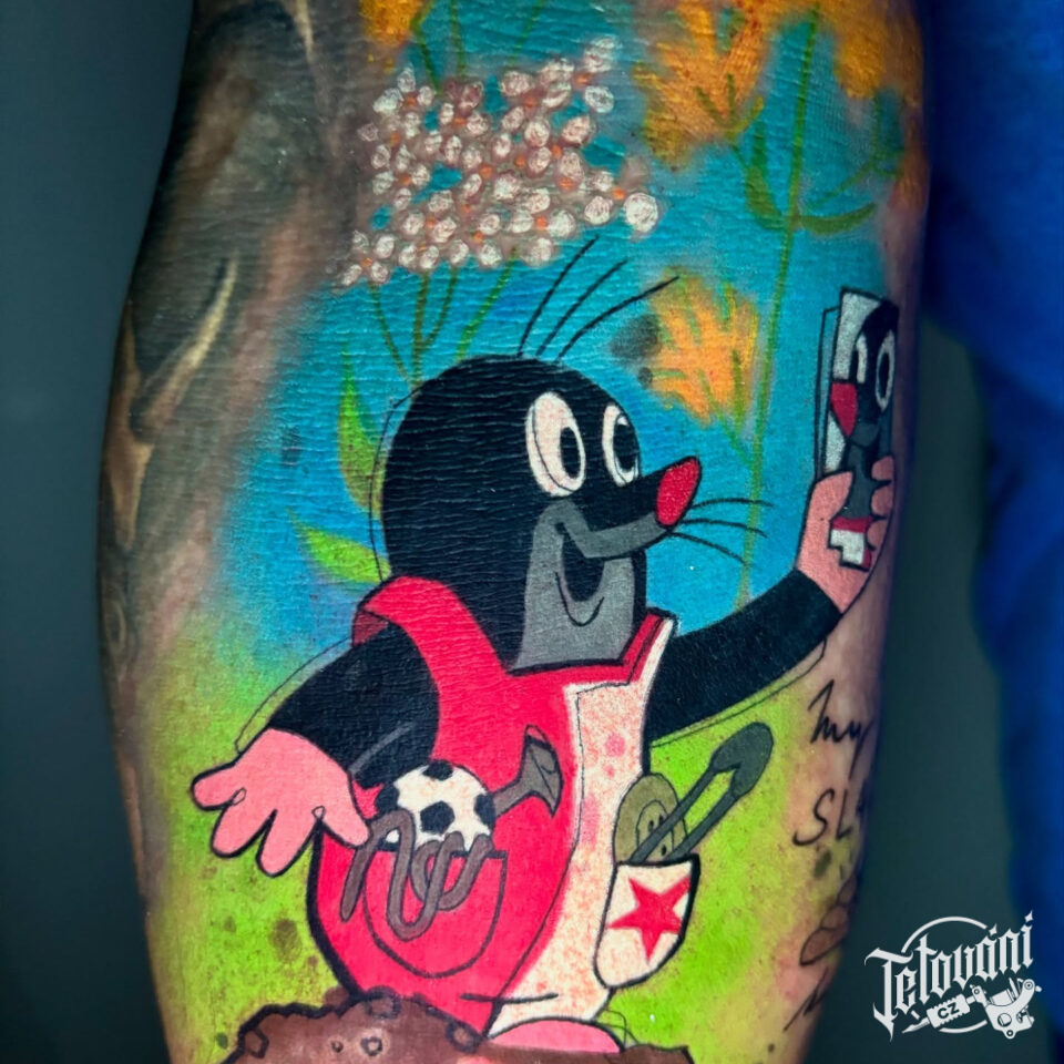 Tetování z filmů a pohádek, postavička krteček na předloktí