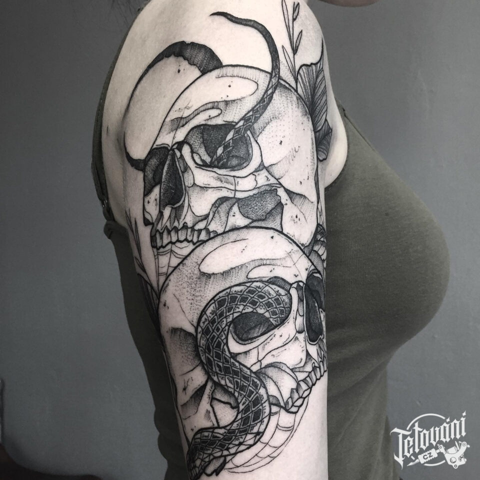 Tetování lebky, had na rameno