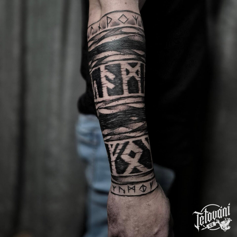 Tetování vikingské symboly na předloktí