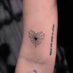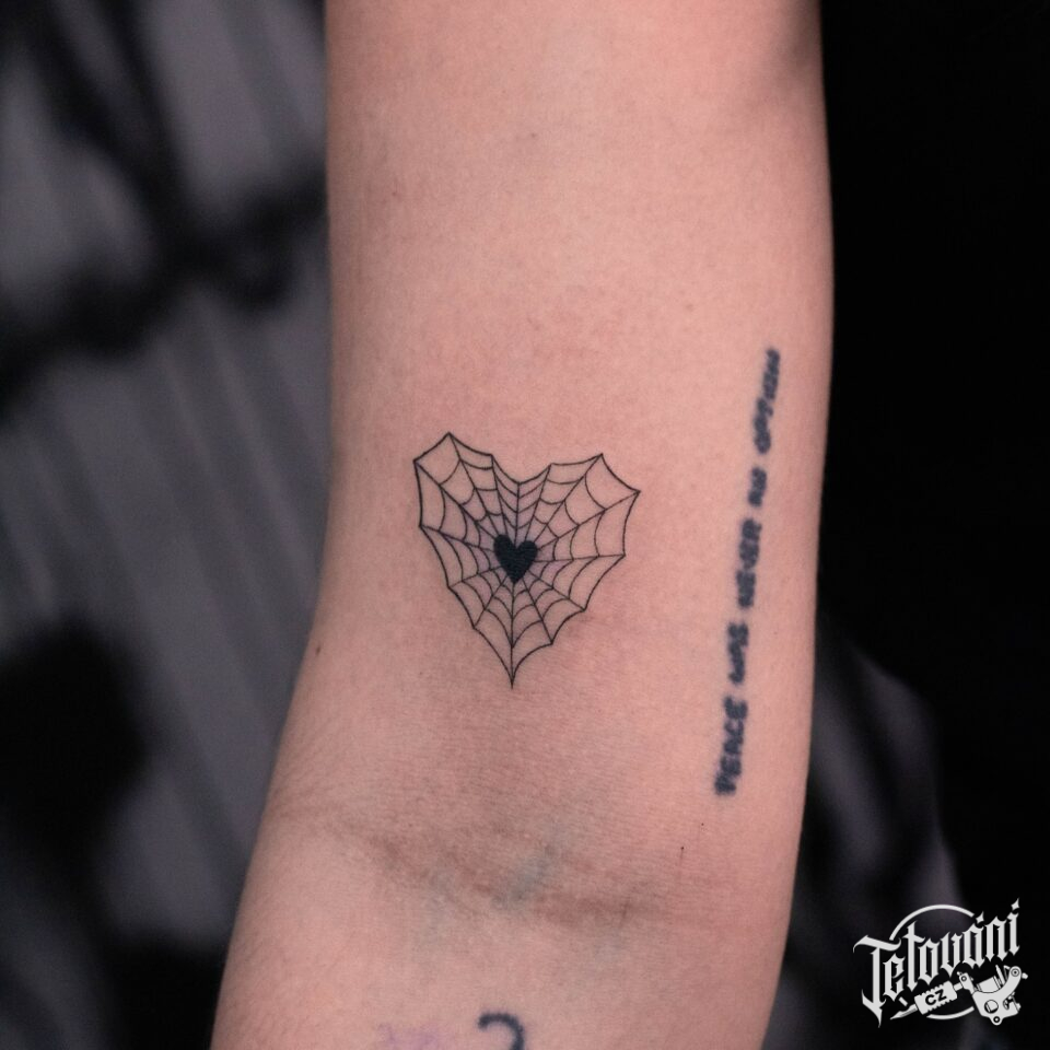 Tetování pavučina ve tvaru srdce na rameno