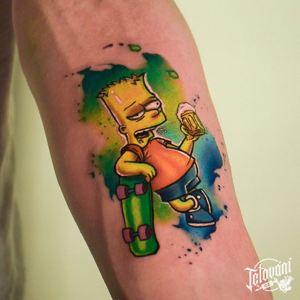Tetování z filmů a pohádek The Simpsonovi, postavička Bart na předloktí
