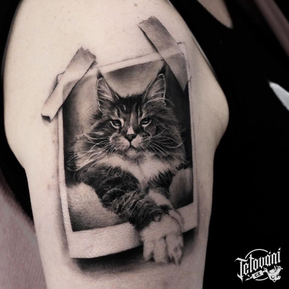 Vzpomínkové tetování, zvíře kočka na rameno