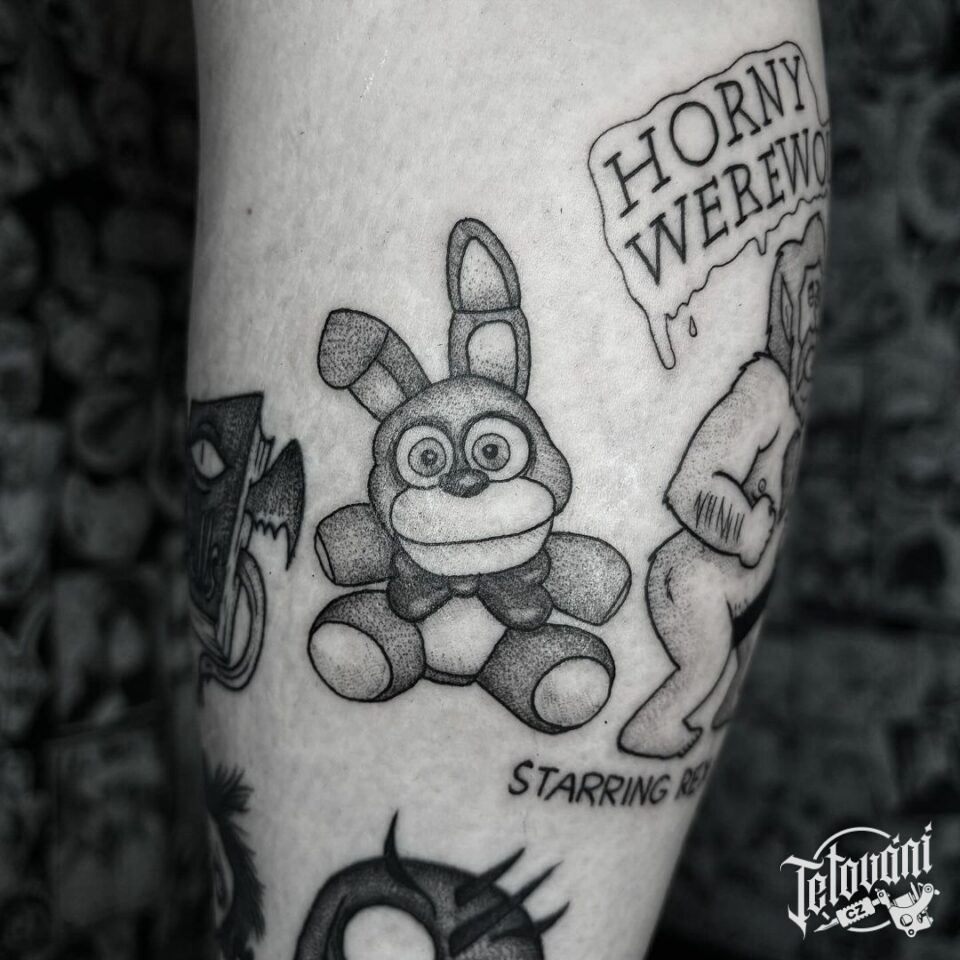 Tetování anime postavičky na lýtko