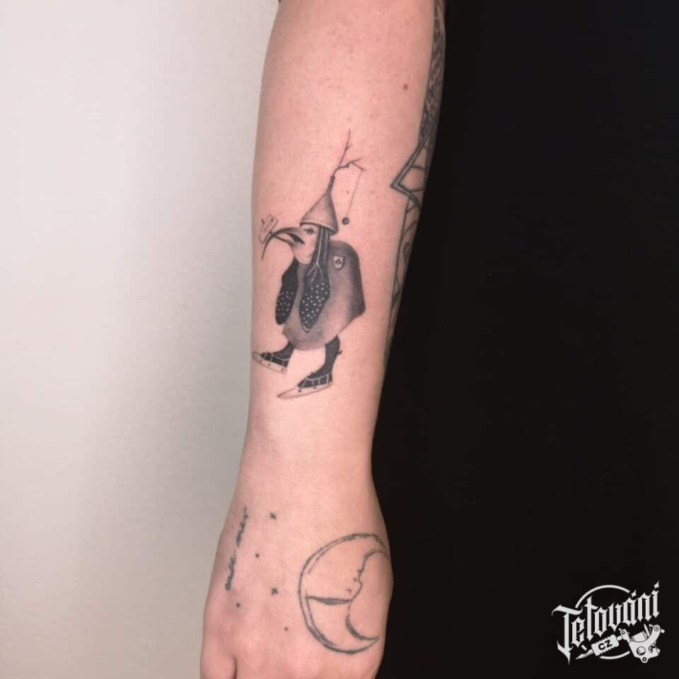 Tetování znaky a symboly, postavička na předloktí