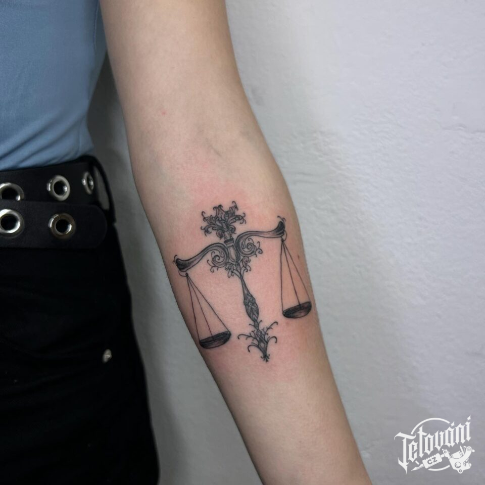 Tetování znamení zvěrokruhu Váhy na předloktí