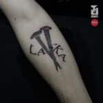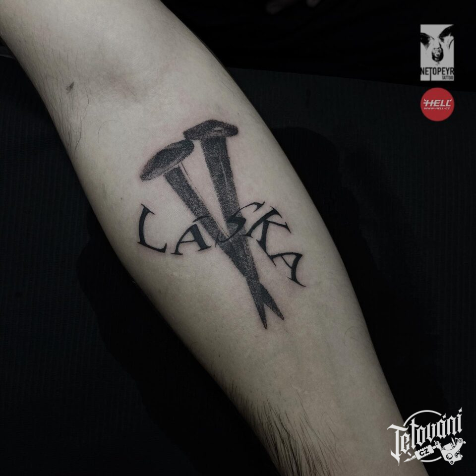 Tetování symboly, nápis láska na předloktí