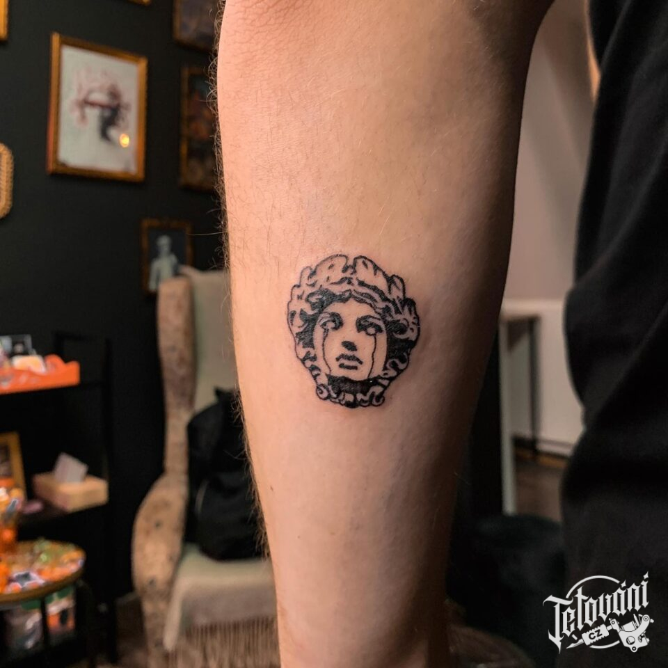 Tetování znaky a symboly náboženství, portrét na předloktí