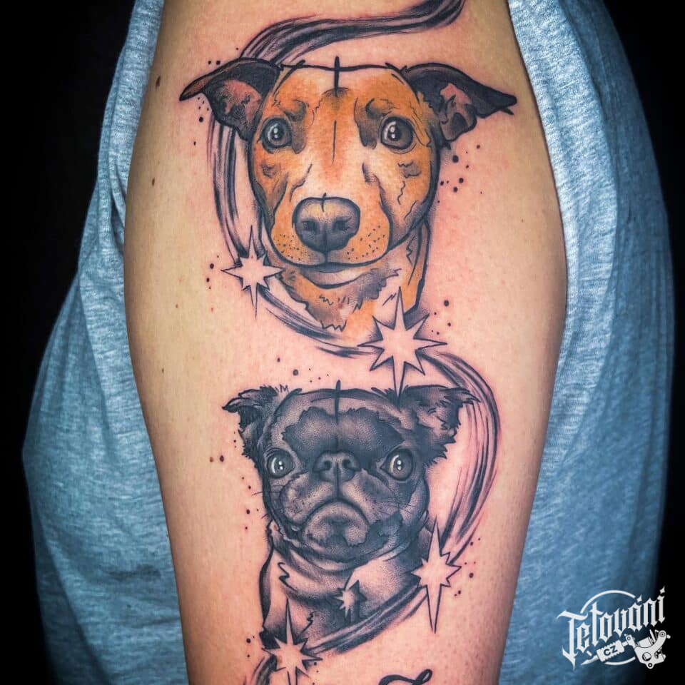 Vzpomínkové tetování psi, zvířata, hvězdy na rameno