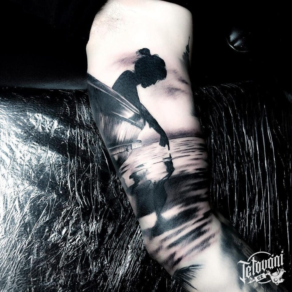 Tetování žena, moře, symbol na paži