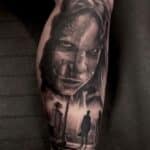 Tetování portrét, symbol na holeň