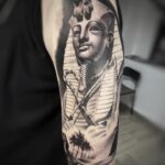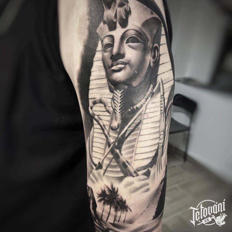 Tetování portrét Tutanchamona, symbol Egypta na rameno
