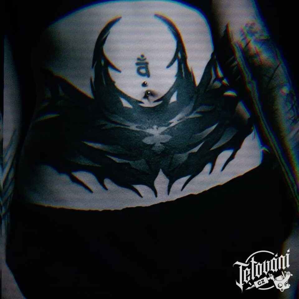 Abstraktní blackwork tetování na břichu