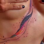 Abstraktní tetování barevné čáry, hvězdy mezi prsa a hrudník
