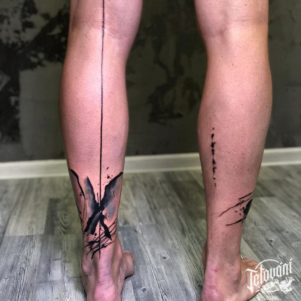 Abstraktní tetování, čára na lýtku