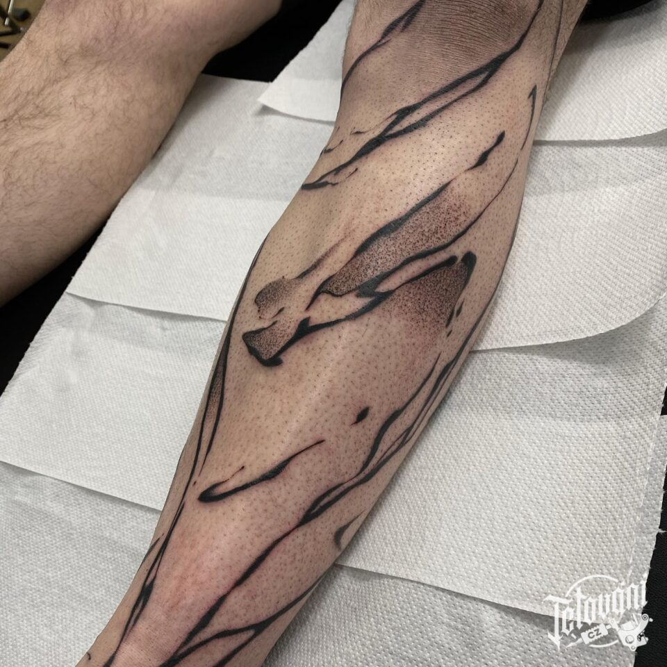 Abstraktní tetování čáry a symboly na holeň