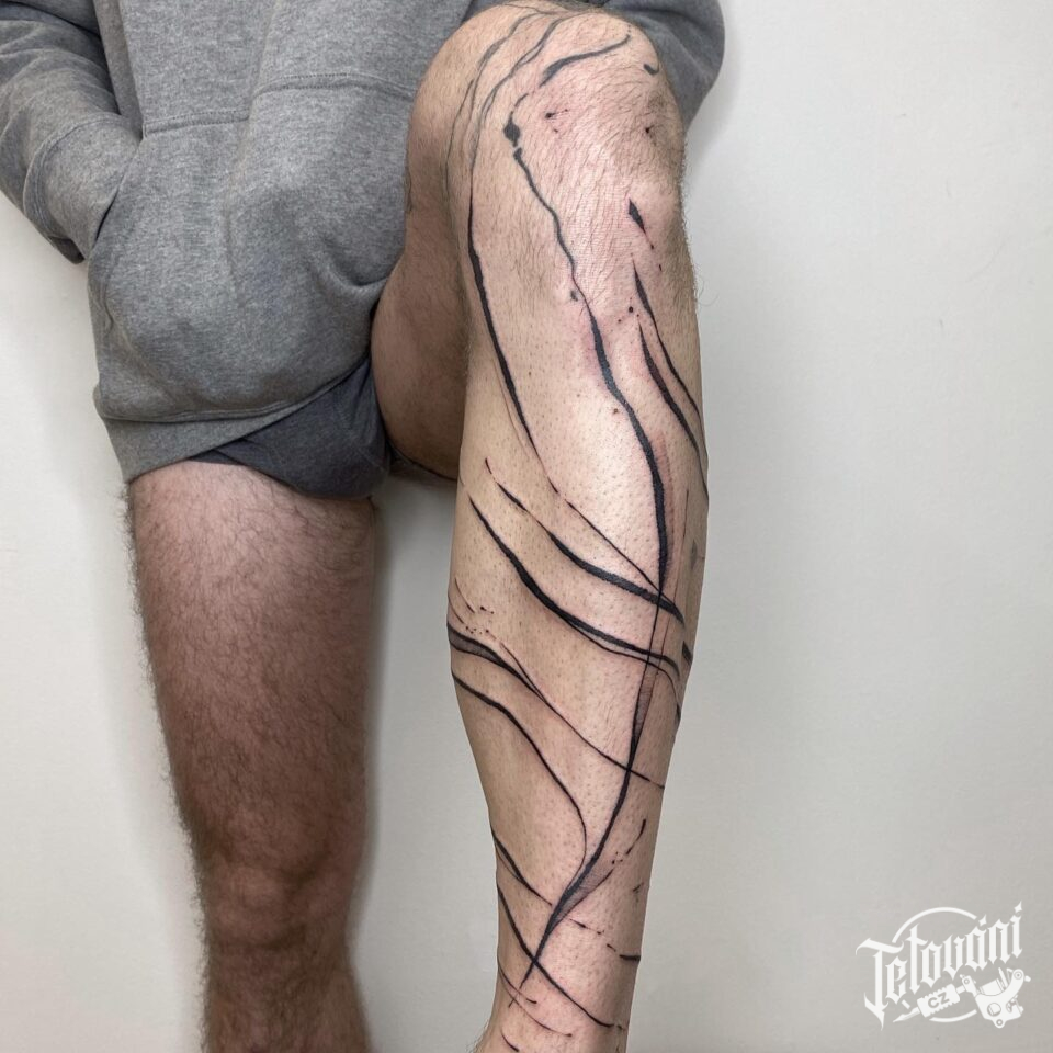 Abstraktní tetování čáry a symboly na holeň