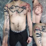 Abstraktní tetování čáry, české tetování mapa na hrudník a ruce
