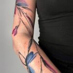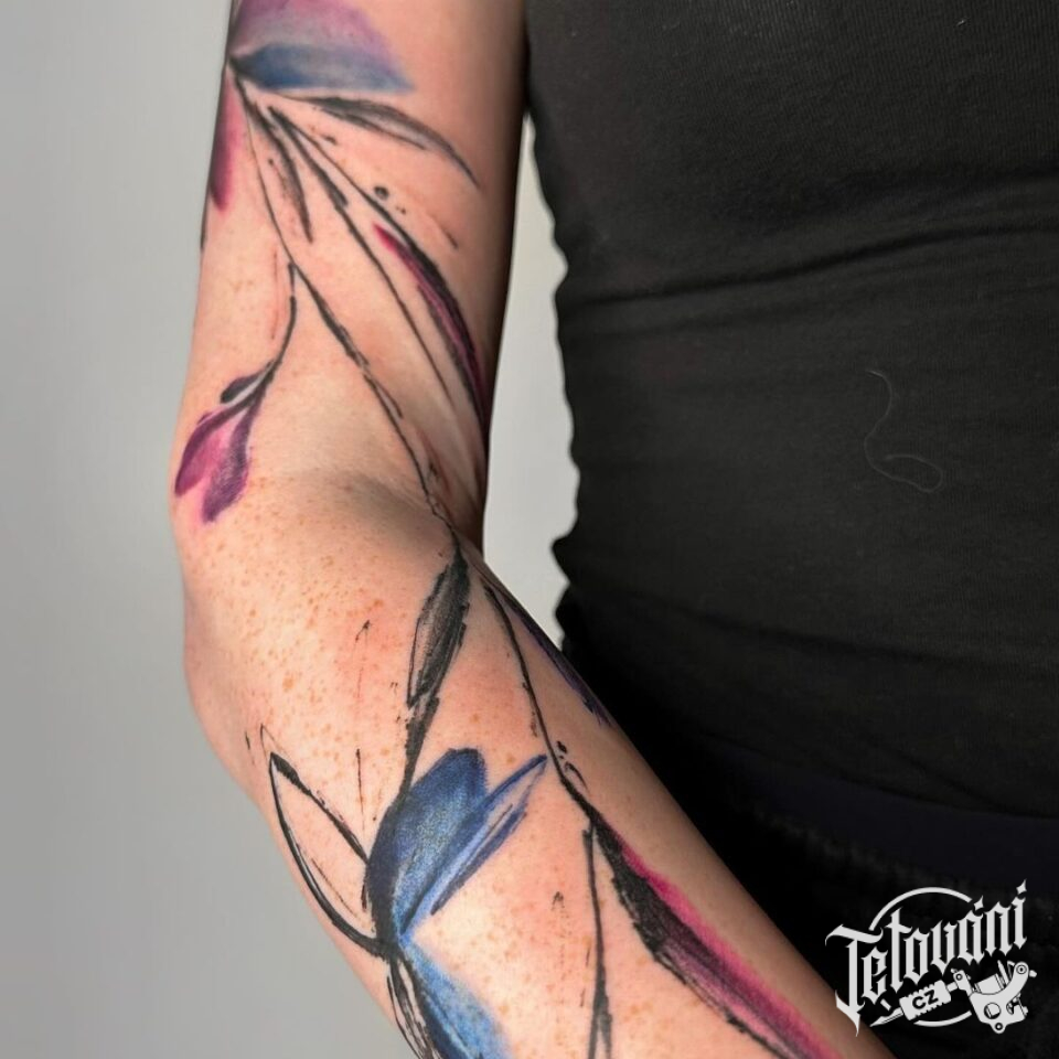 Abstraktní tetování čáry, květiny na předloktí a rameno