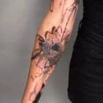 Abstraktní tetování čáry, květiny na předloktí
