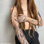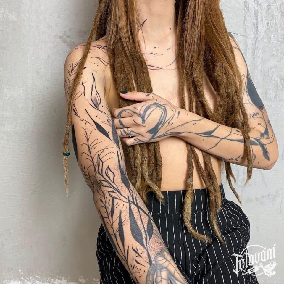 Abstraktní tetování čáry, luční kvítí, symboly na ruku