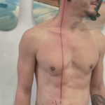 Abstraktní tetování čáry na krk, hrudník, břicho