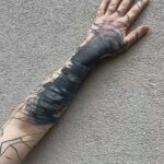 Abstraktní tetování čáry na předloktí a hřbet ruky