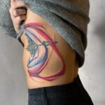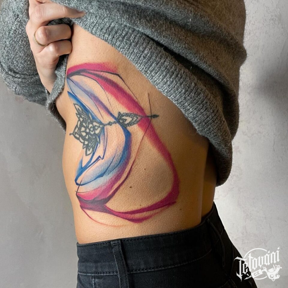 Abstraktní tetování, čáry, symboly na bok žeber