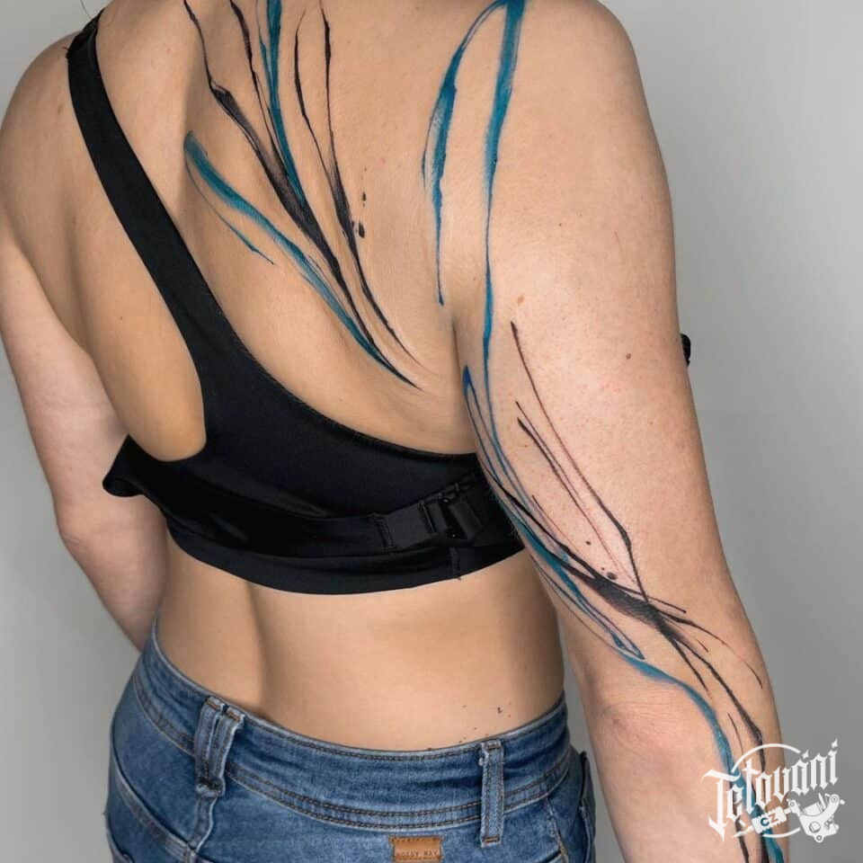 Abstraktní tetování, čáry, symboly, na rameno a lopatku