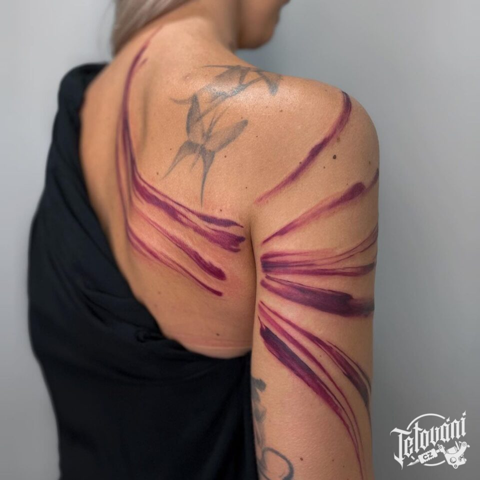 Abstraktní tetování, čáry, symboly na rameno a lopatku