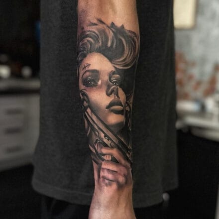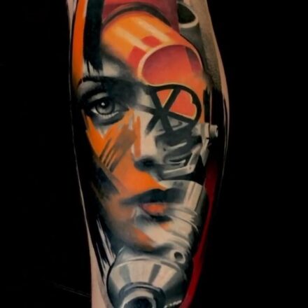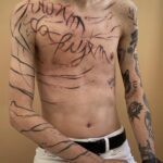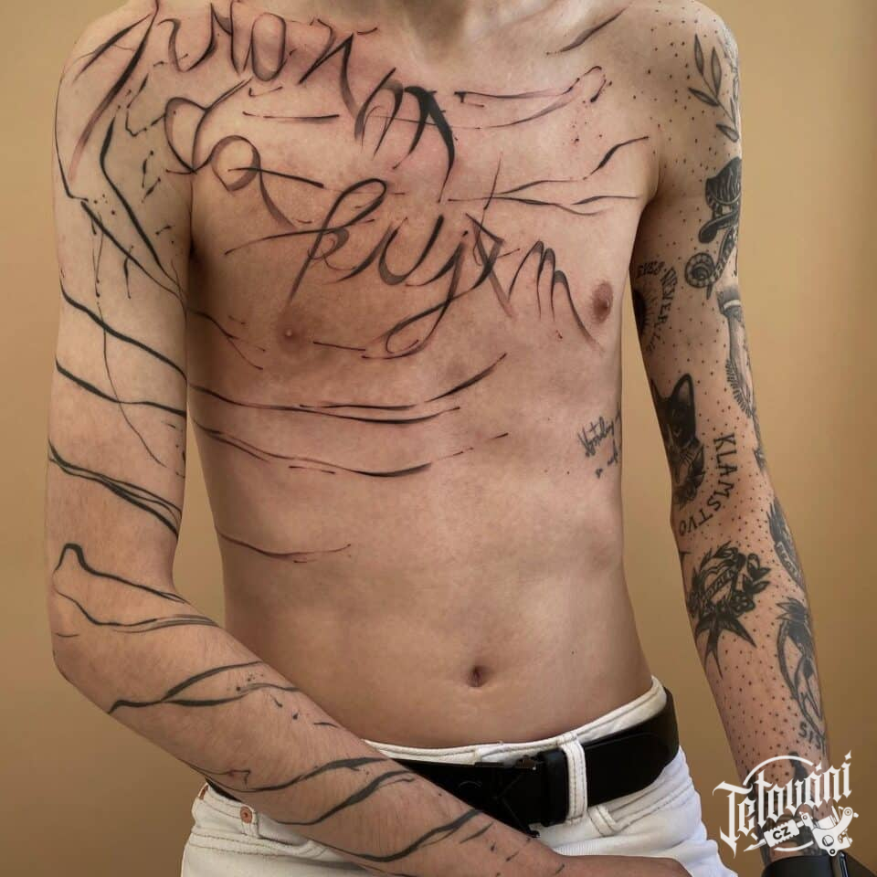Abstraktní tetování čáry, symboly, nápisy na hrudník a ruku