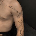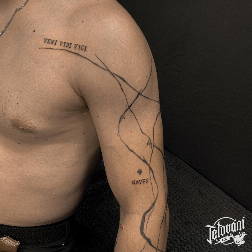 Abstraktní tetování čáry, symboly, nápisy na rameno