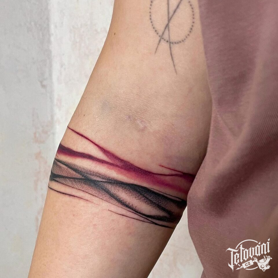 Abstraktní tetování, čáry, symboly, pruhy na předloktí