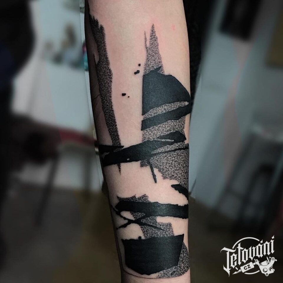 Abstraktní tetování, čáry, znaky a symboly na předloktí