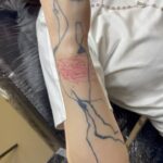 Abstraktní tetování, čáry, znaky a symboly na předloktí