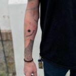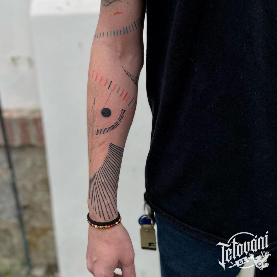 Abstraktní tetování, čáry, znaky a symboly na předloktí