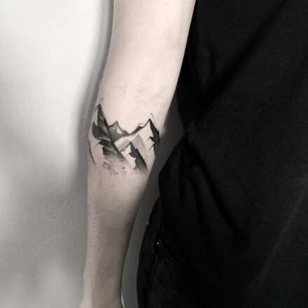 Abstraktní tetování hory, příroda na předloktí