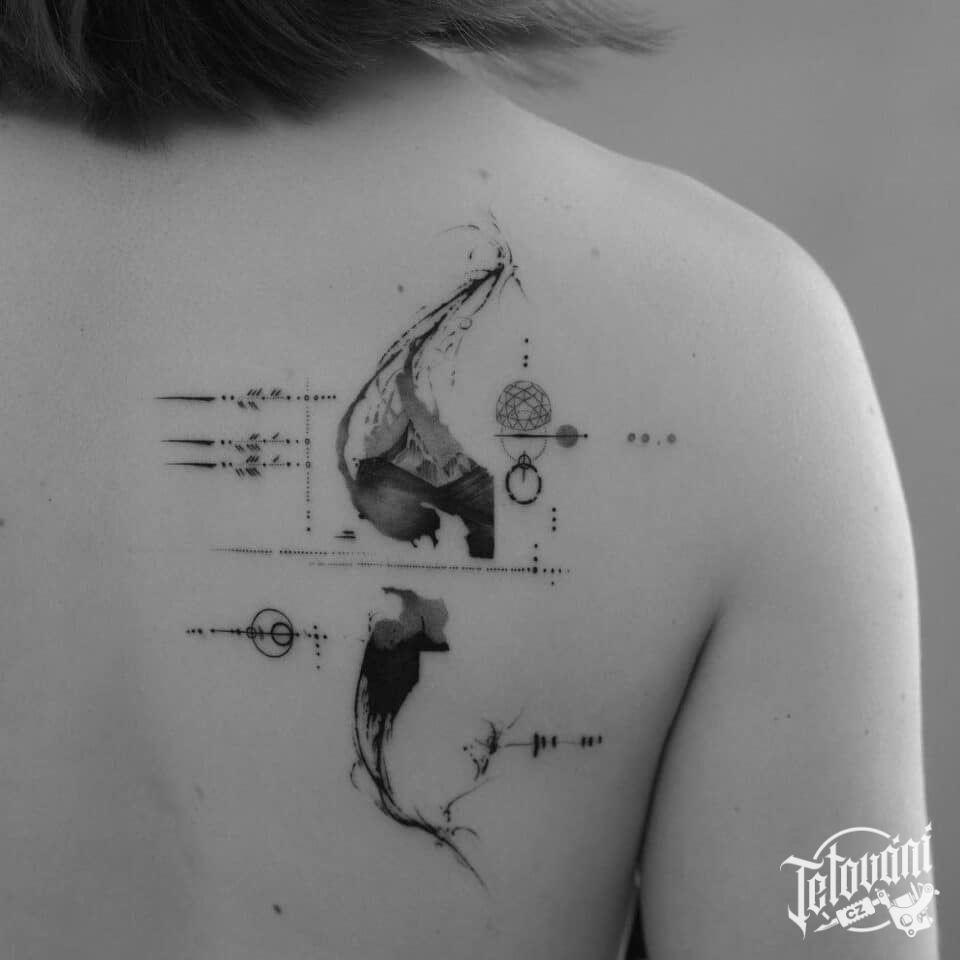 Abstraktní tetování hory, tvary na lopatku