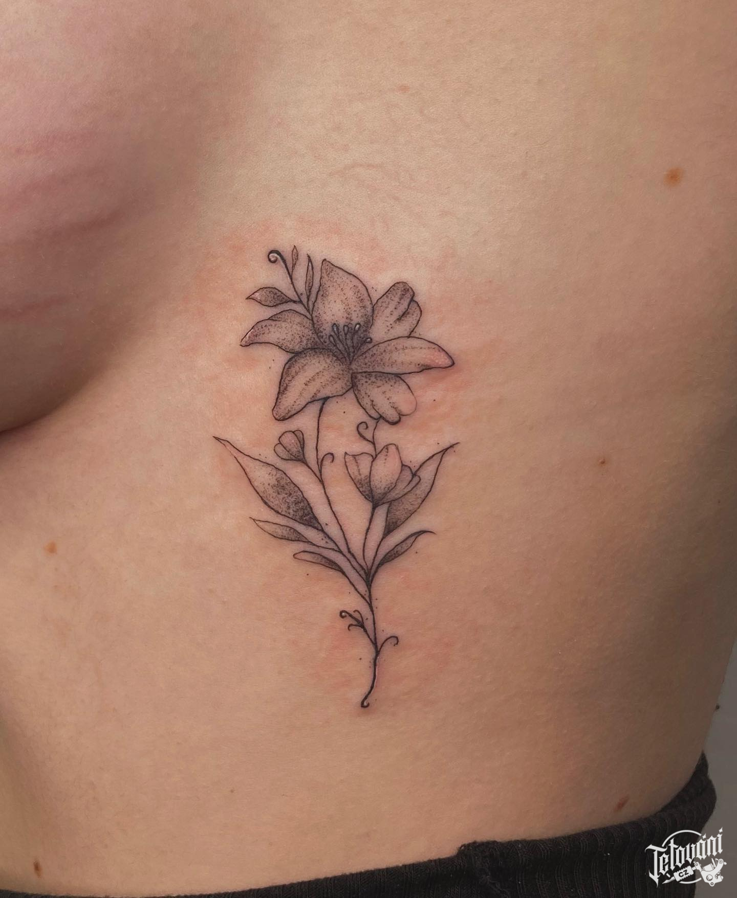 Abstraktní tetování květina Lilie na břicho a hrudník