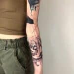 Abstraktní tetování květina pivoňka, zvíře, hmyz moucha na rameno