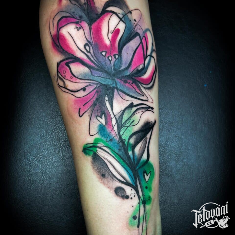 Abstraktní tetování květiny na předloktí