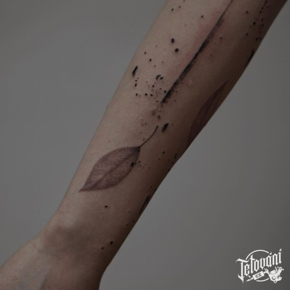 Abstraktní tetování, list na předloktí