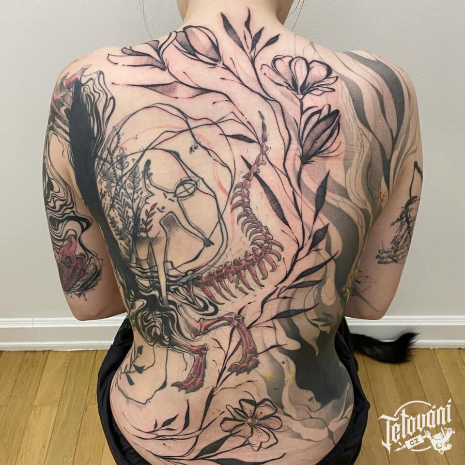 Abstraktní tetování luční kvítí, květiny, symboly na záda