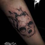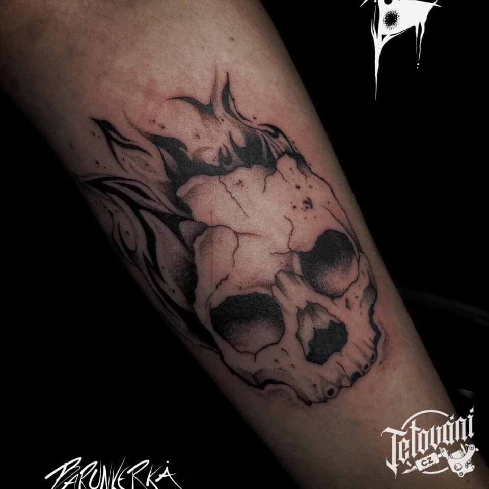 Abstraktní tetování portrét lebky na předloktí
