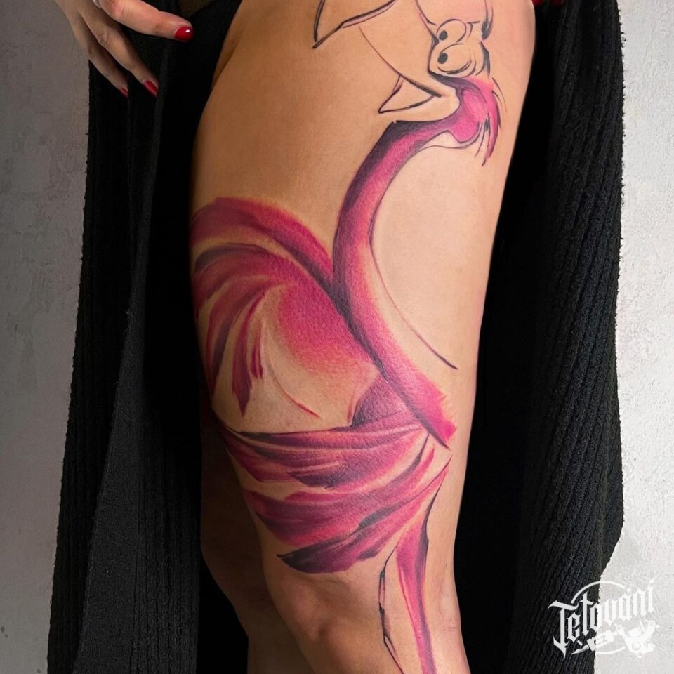 Abstraktní tetování, pták, zvíře, symbol na stehno