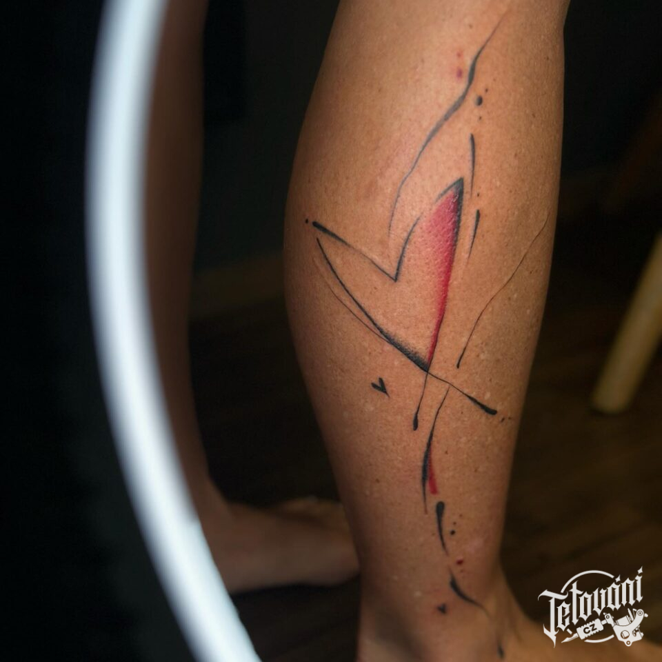 Abstraktní tetování srdce na lýtko